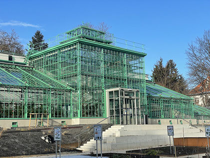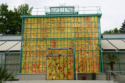 Sehr wichtig für das Projekt ist auch das historische Gewächshaus im Botanischen Garten in Graz, in dem sich studio ASYNCHROME mit ihrer Arbeit Fusion den Fragen nach Verschmelzungen in einer Zeit der gesellschaftlichen Transformation stellen. Fusion entwickelt sich im Zwischenraum der Verglasungen entlang der Eingangsfassade. Bereits aus der Entfernung, dem Außenraum sichtbar, verwandelt sich das Werk, nachdem man den Innenraum betritt.